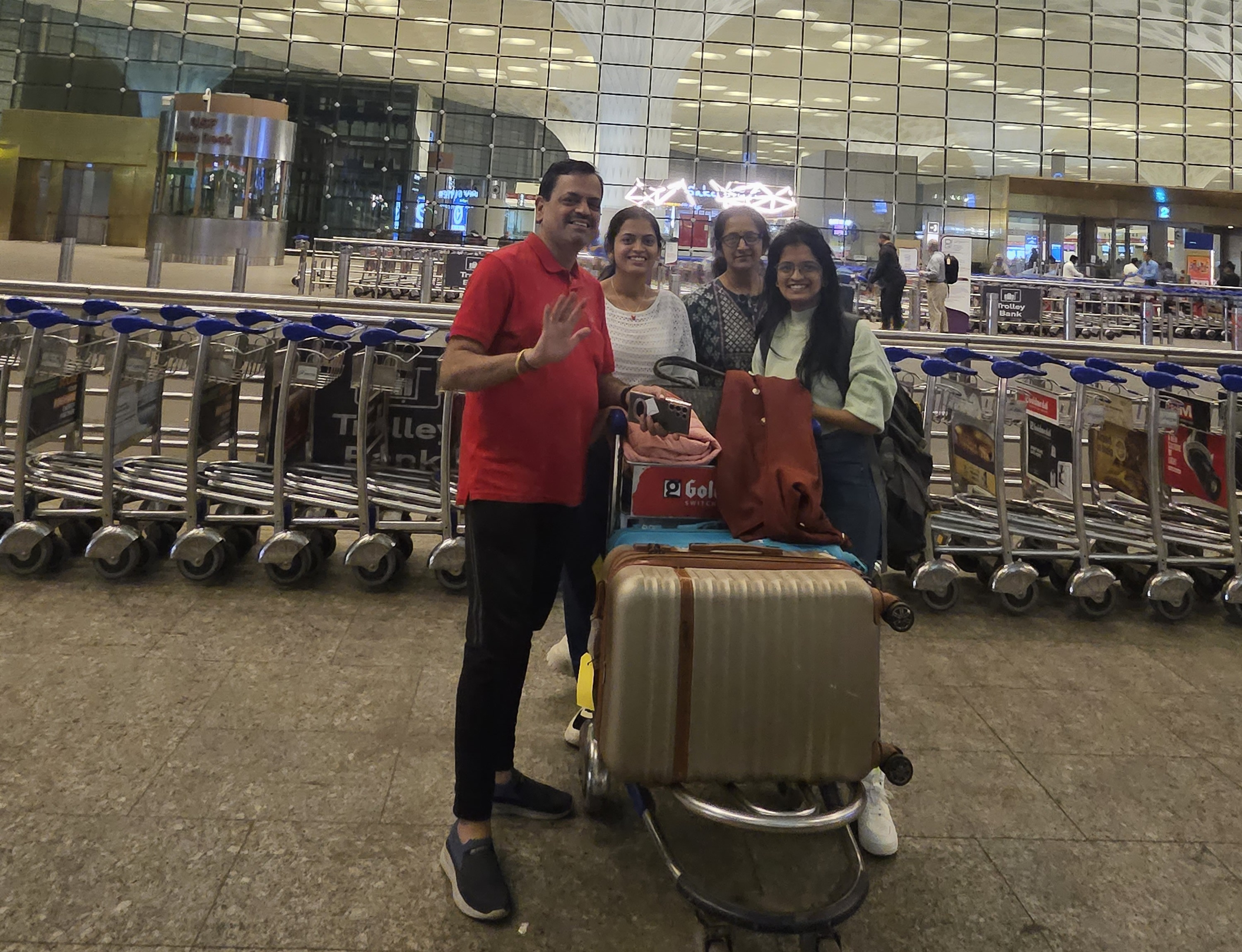Just when we thought it would be the driver dropping us off, surprise! Our parents appeared at the gate, holding back tears and faith. After tight hugs, chilled instructions, and the precious chilly spray for self-defense, we were off to the skies.